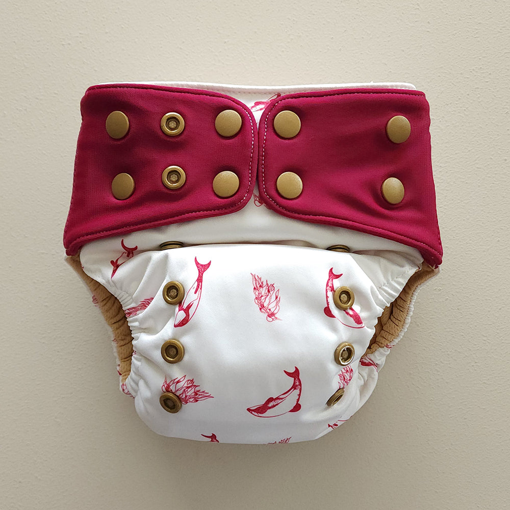 Functional as both a pocket nappy and snap-in (all-in-two or hybrid), with a uniquely designed anchor system to help keep inserts in place.