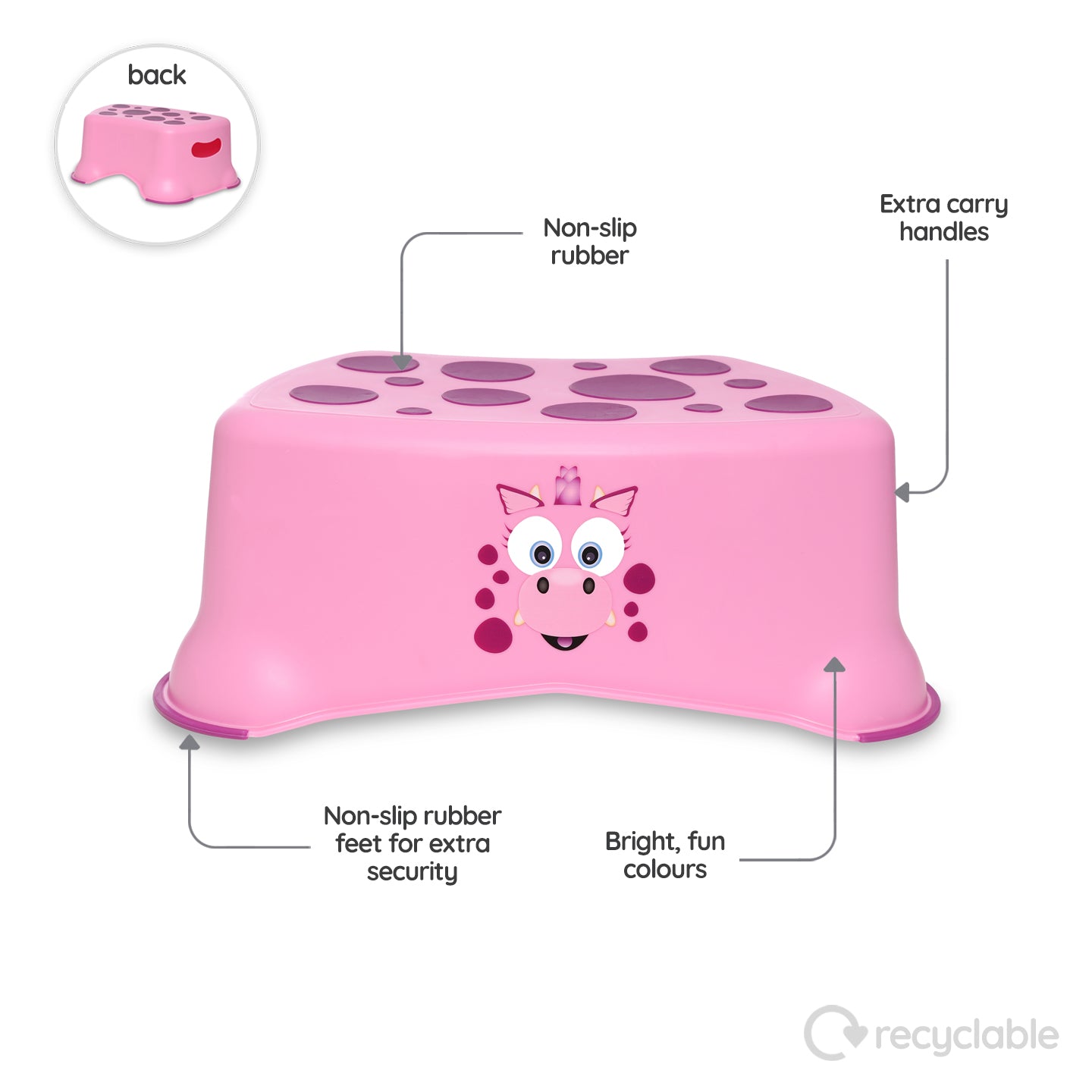 • Fjölbreytt notkun: Fullkominn fyrir baðherbergið eða hvar sem barnið þarf smá auka hæð.