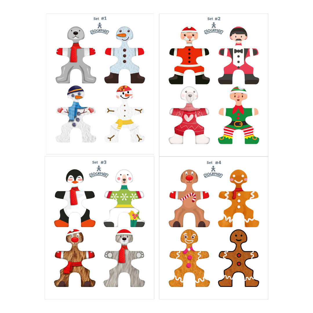 Hvert límmiðasett inniheldur 16 pappírslímmiða með mismunandi búningum, litnum eða hvítum örkunum.